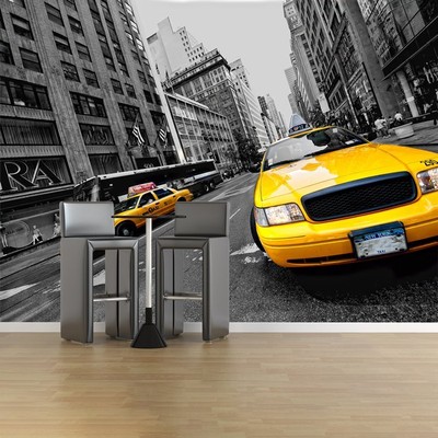 New York Taxi Fotomurali Bianco e Nero Carta Da Parati ...