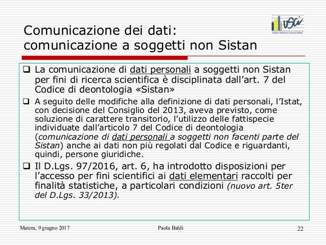 P. Baldi, Potenzialità e limiti del trattamento di dati ...