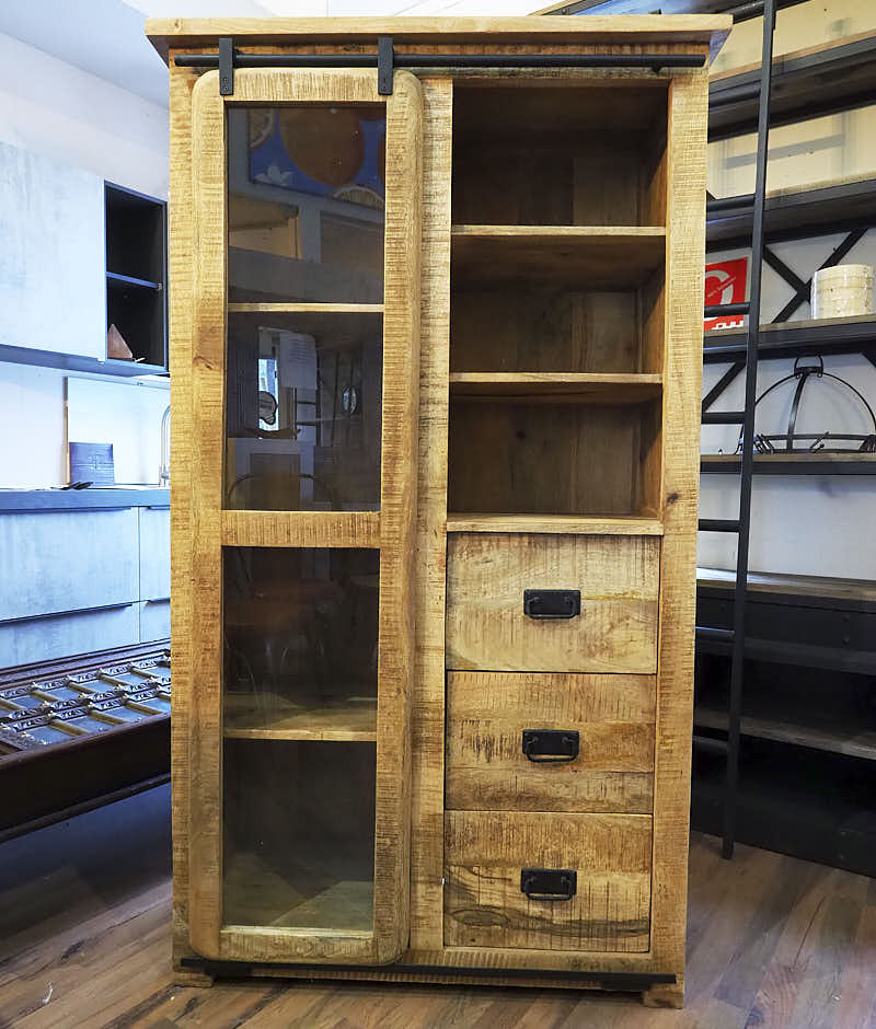 Mobile vetrina soggiorno industrial - anta a vetro scorrevole