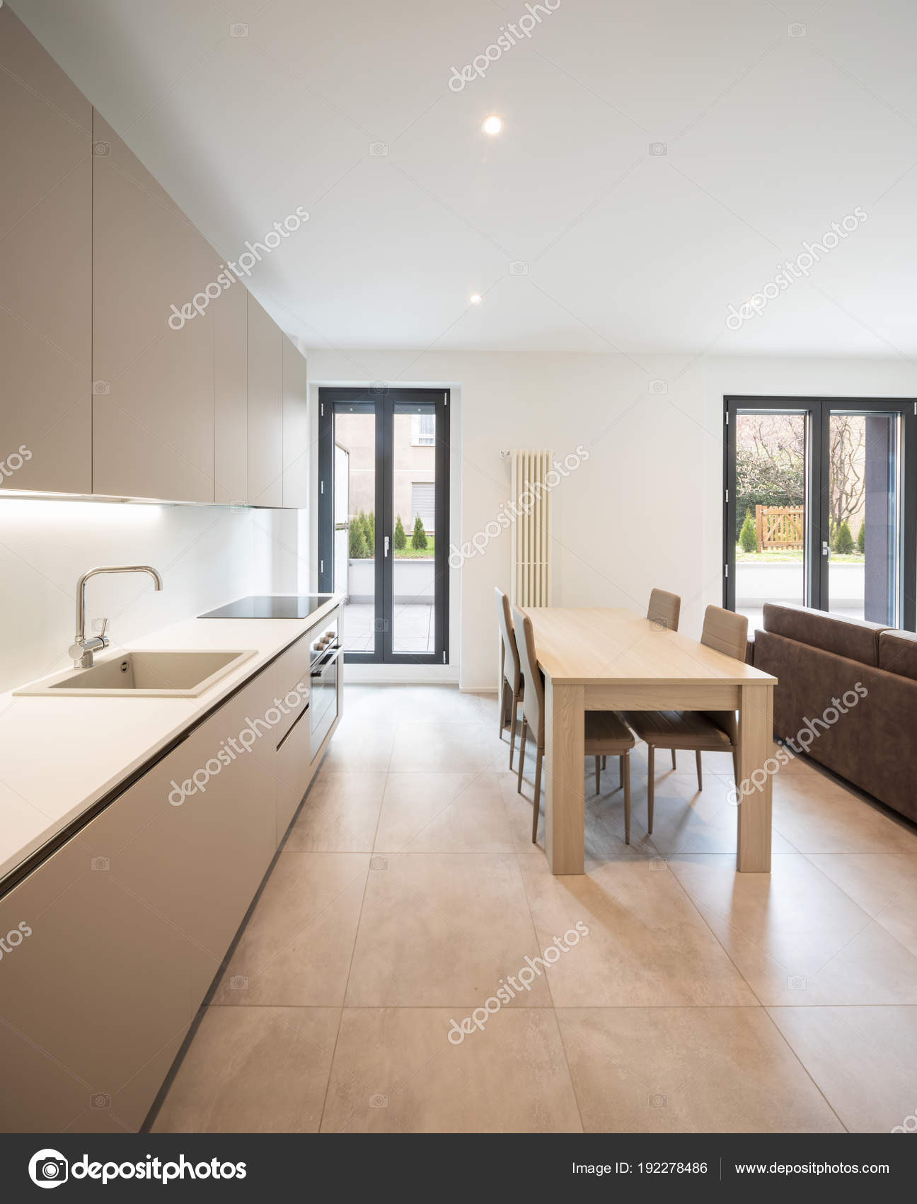 Open space con elegante cucina e soggiorno — Foto Stock ...