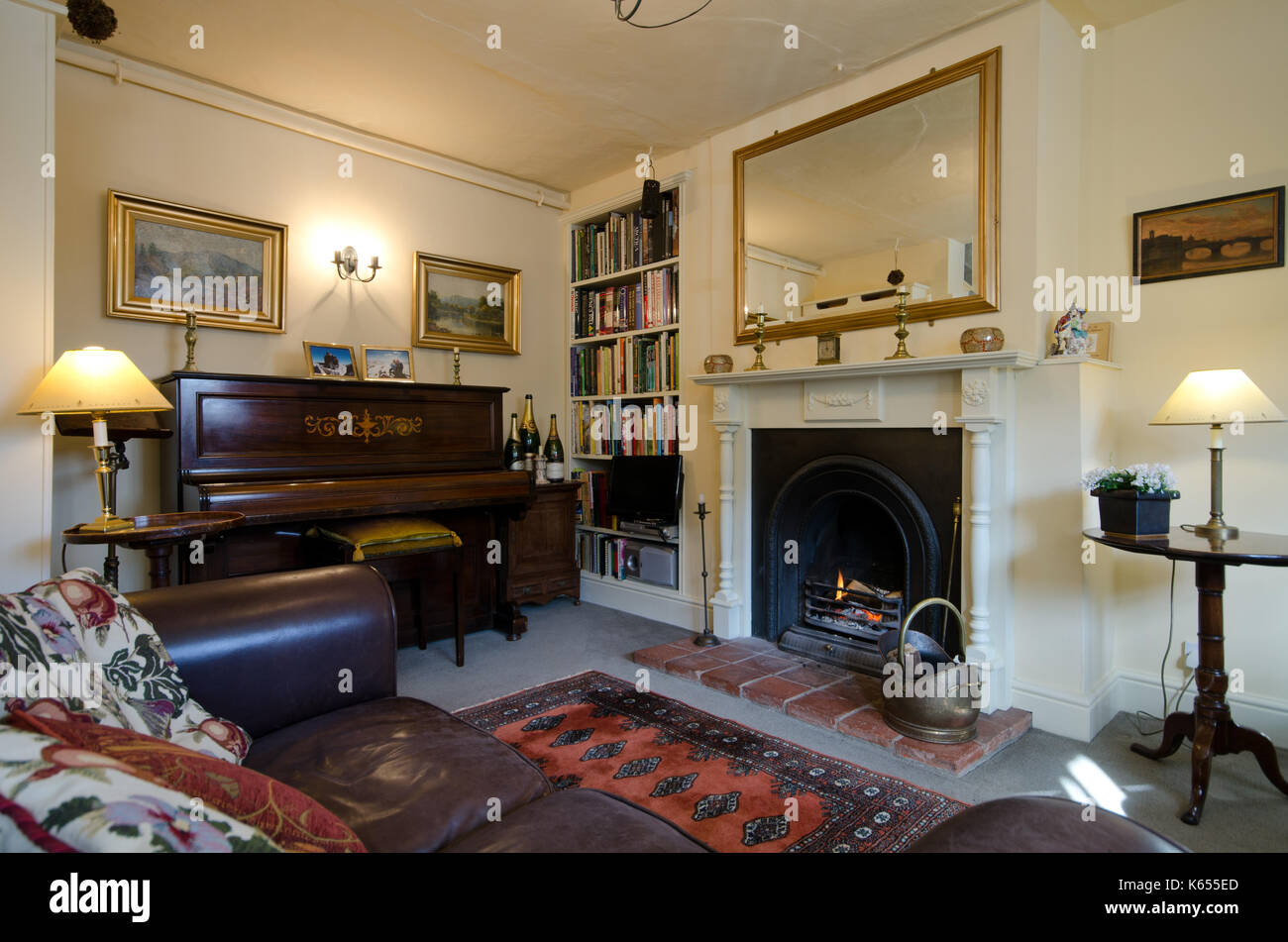 Pianoforte verticale e caminetto in soggiorno Foto ...